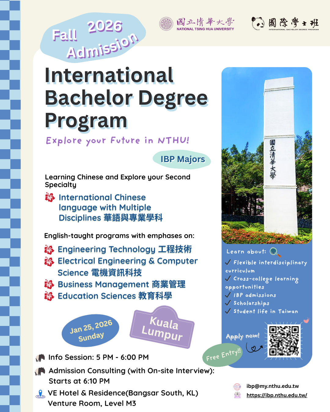 IBP 招生團隊將於 2026 年 1 月 25 日前往馬來西亞吉隆坡,舉辦: