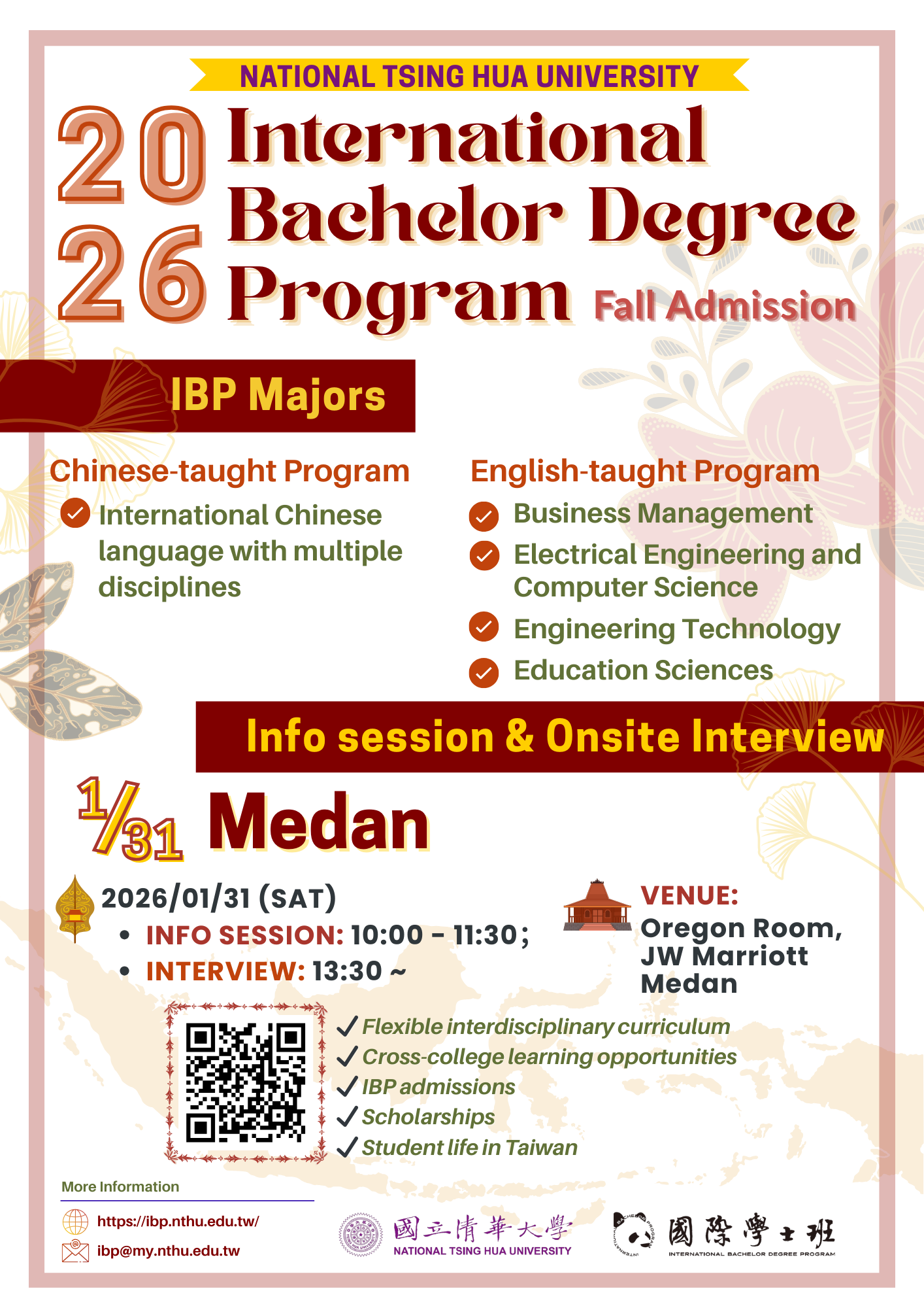 IBP 招生團隊將於 2026 年 1 月 31 日前往 印尼 棉蘭,舉辦: